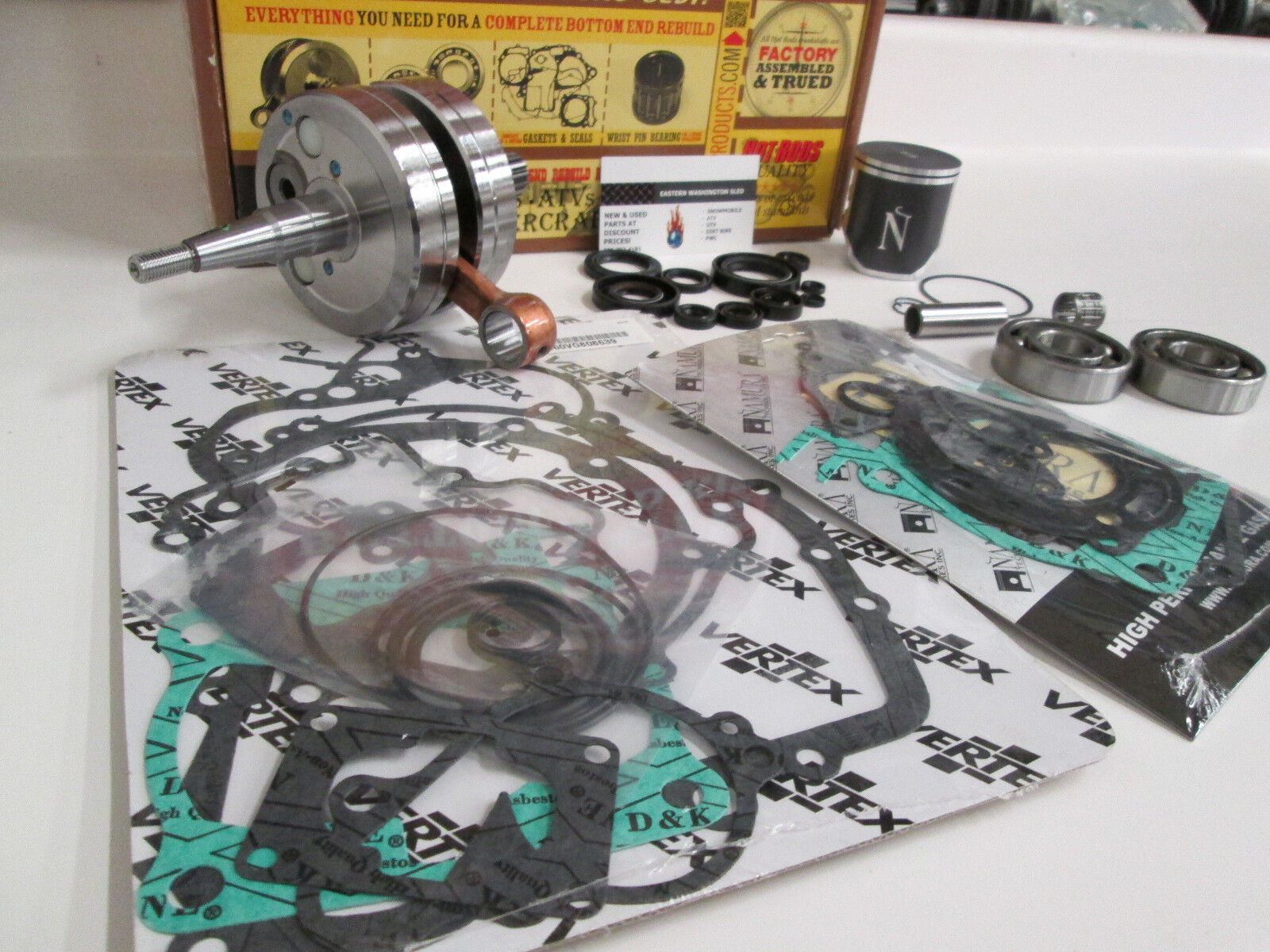 Kit contains everything you need to complete your rebuild the right way, the first time- crankshaft and connecting rod, Namura 44.96mm piston, Crankshaft bearings, seals, and complete gasket kit
