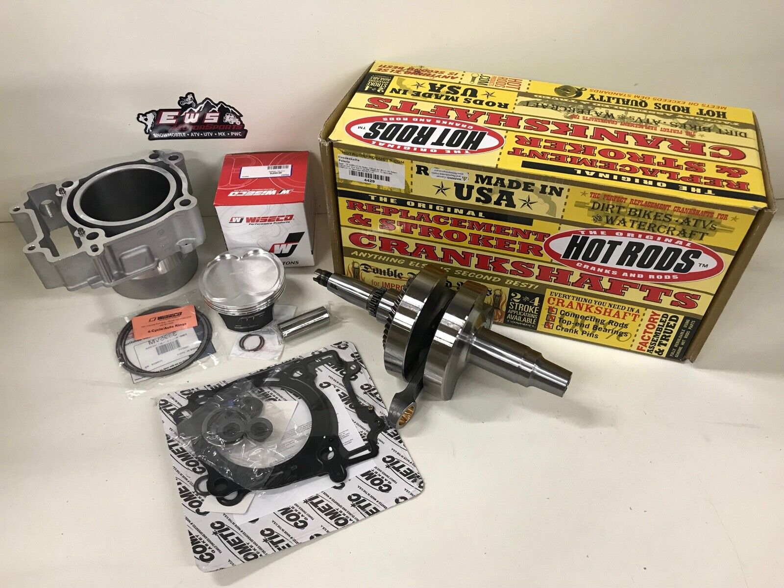 This kit comes with a Hot Rods Crankshaft, OEM Cylinder, Wiseco Forged Piston and Top end gasket kit